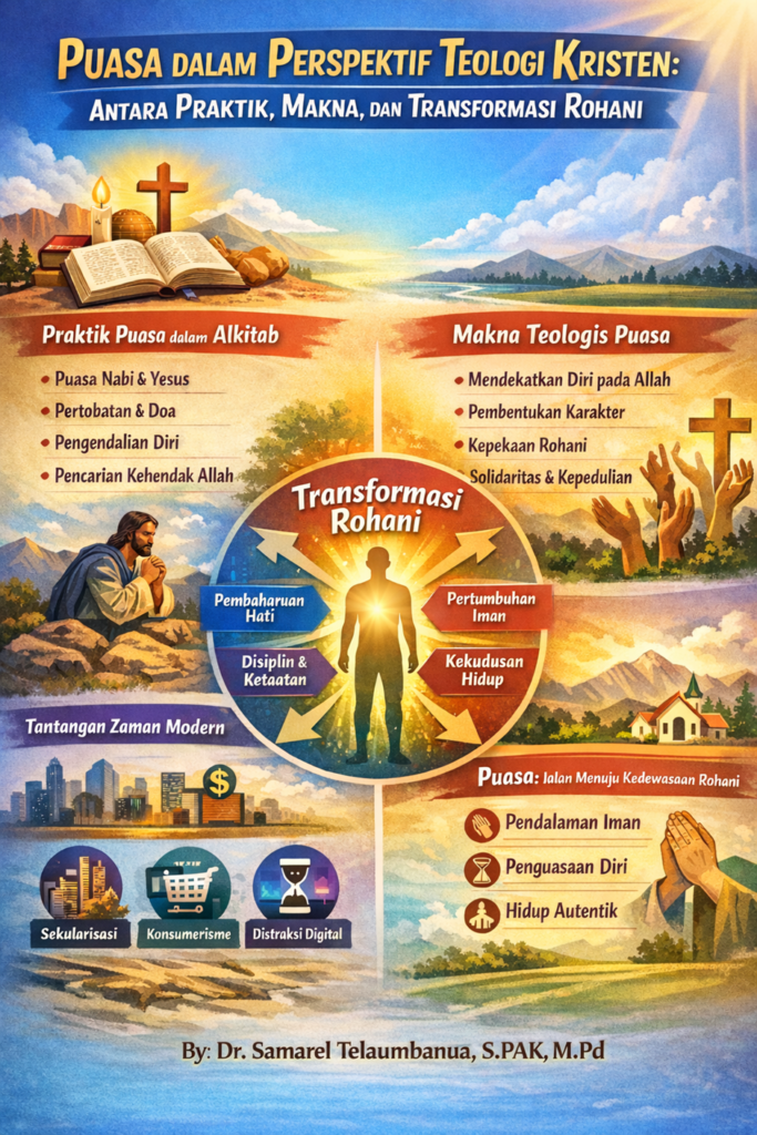 Puasa dalam tradisi Kristen pada hakikatnya merupakan praktik spiritual yang memiliki tujuan utama untuk memperdalam relasi manusia dengan Allah. Dalam pengertian teologis yang autentik, puasa bukan sekadar tindakan menahan diri dari makanan, melainkan sebuah ekspresi pertobatan, kerendahan hati, dan penyerahan diri secara total kepada kehendak Allah. Namun, dalam perkembangan praktik keagamaan, terutama dalam konteks modern, terjadi pergeseran makna puasa dari dimensi spiritual yang mendalam menuju bentuk ritual formal yang cenderung kehilangan esensinya.